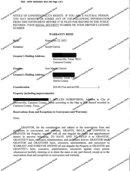 La opacidad en el Congreso local se acentúa con el caso del diputado de Acción Nacional, Ismael García Cabeza de Vaca. Tras negar inicialmente la posesión de propiedades en territorio estadounidense, el legislador fue cuestionado con documentos de transferencia de dominio que confirman que en 2023 cedió un terreno en Brownsville a su hermano, José Manuel.