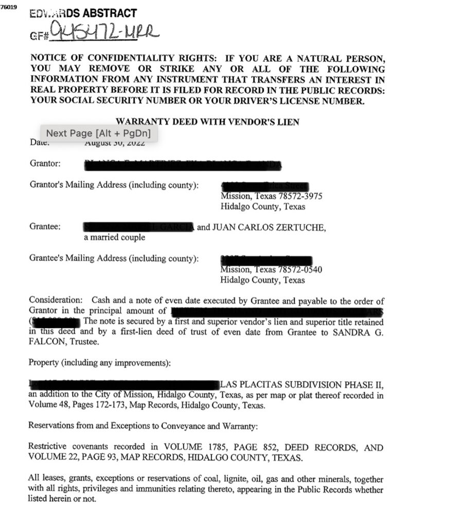 Por su parte, el diputado de Movimiento Ciudadano, Juan Carlos Zertuche Romero, omitió reportar activos en el extranjero, aun cuando los registros inmobiliarios de Texas detallan operaciones recientes a su nombre. Los documentos oficiales registran la compra de una propiedad en la subdivisión Villa Hermosa en McAllen durante 2021 y la adquisición de otro inmueble en Los Fresnos en 2022. Ninguno de estos movimientos inmobiliarios en los condados fronterizos fue transparentado en su declaración patrimonial ante las autoridades fiscalizadoras de Tamaulipas.